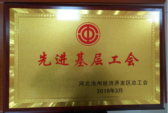 經(jīng)滄州經(jīng)濟開發(fā)區(qū)總工會綜合評比,研究決定,我公司工會委員會被授予“2017年度先進(jìn)基層工會組織”榮譽稱號。公司工會主席徐福河被授予“先進(jìn)基層工會主席”榮譽稱號,公司工會專員李艷萍被授予“先進(jìn)基層工會工作者”榮譽稱號。