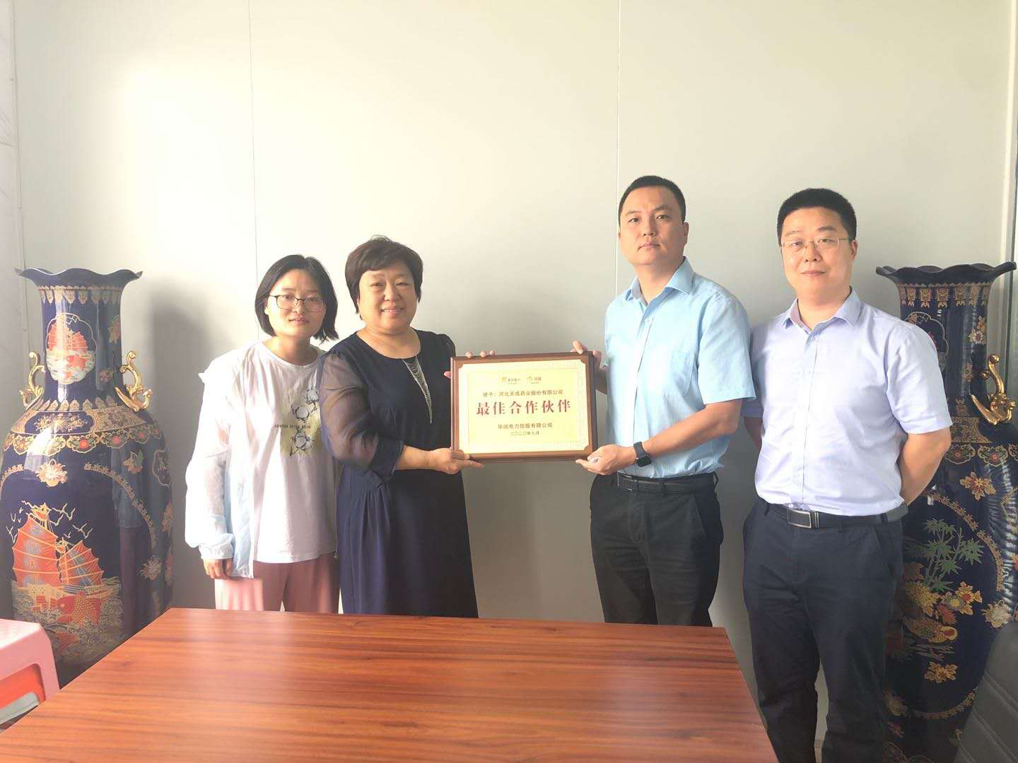 近日,華潤(rùn)電力控股有限公司大客戶總監(jiān)李冰一行為公司送來(lái)“最佳合作伙伴”牌匾。公司副總經(jīng)理宮平熱情接待并合影。